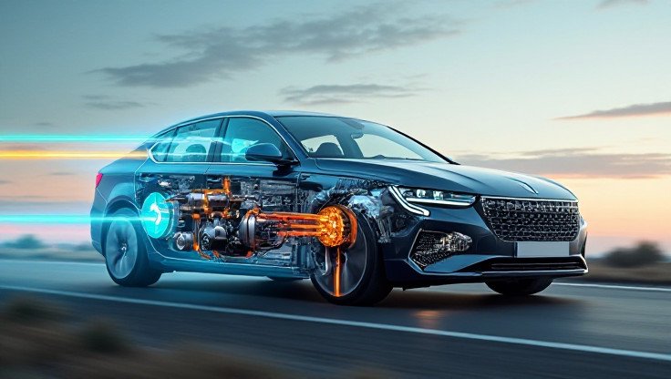 엔진과 전기 모터가 함께 작동하며, 주행 중 에너지를 회수해 연비를 향상시키고 성능을 보조합니다.